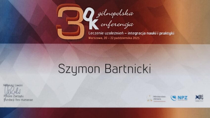 W dniach 20-22 października 2025 roku uczestniczyłem w III Ogólnopolskiej Konferencji „Leczenie uzależnień – integracja nauki i praktyki” zorganizowanej przez Fundację Res Humanae na zlecenie Krajowego Centrum Przeciwdziałania Uzależnieniom. Wydarzenie odbyło się w Warszawie, gromadząc specjalistów psychoterapii uzależnień, psychoterapeutów, instruktorów terapii uzależnień, psychiatrów i psychologów z całej Polski.